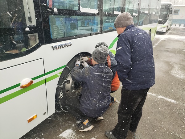 為公交車安裝防滑鏈